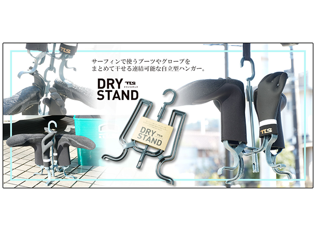 冬サーフィンの必需品であるサーフブーツやグローブなどの小物を干すことができるハンガー。吊り下げて使うことも、床に置いて使うこともできる「2 WAY」ハンガー。