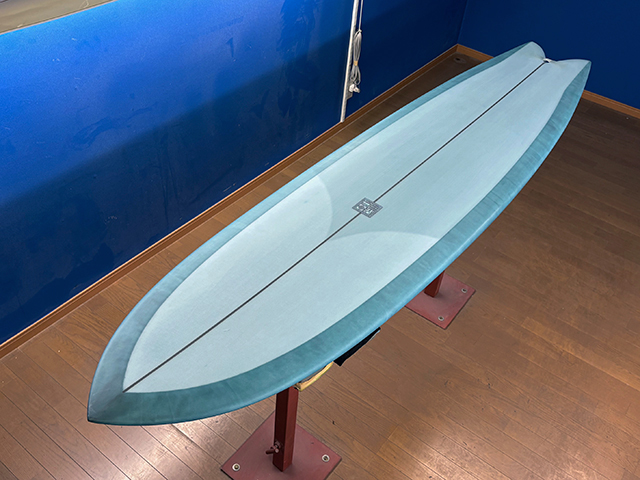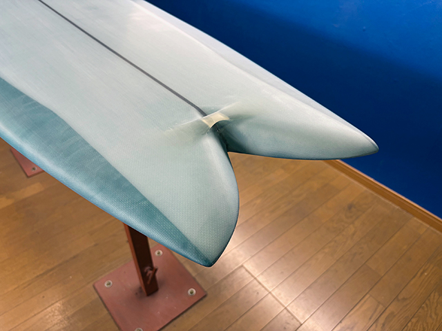 シェイプ、デザインからカラーリング、細部にわたる仕上げまで、全ての工程を小倉氏が仕上げるハンドメイドサーフボードです。