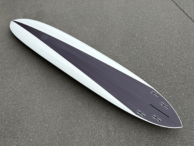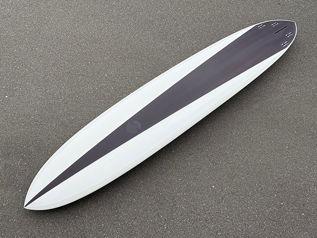 シェイプ、デザインからカラーリング、細部にわたる仕上げまで、全ての工程を小倉氏が仕上げるハンドメイドサーフボードです。