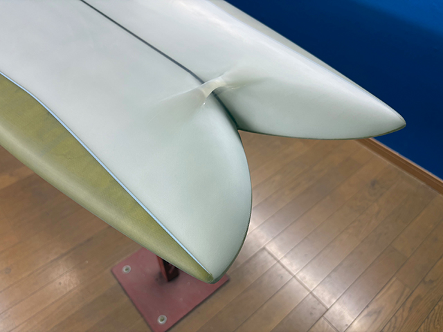シェイプ、デザインからカラーリング、細部にわたる仕上げまで、全ての工程を小倉氏が仕上げるハンドメイドサーフボードです。
